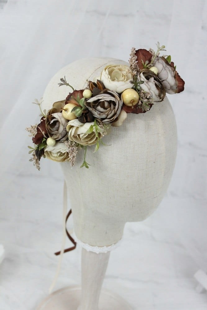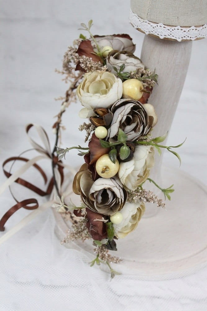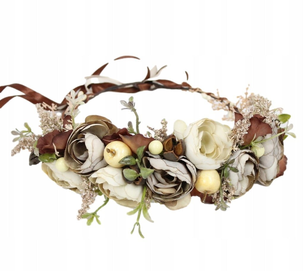 Wianek jesienny do włosów BEŻOWY opaska do sesji