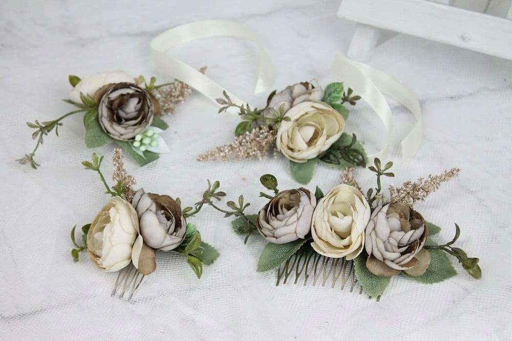 Do kompletu możemy wykonać kotylion na rękę, przypinkę do butonierki czy inną ozdobę. Idealnie będą one pasowały dla druhen, świadków czy rodziców.