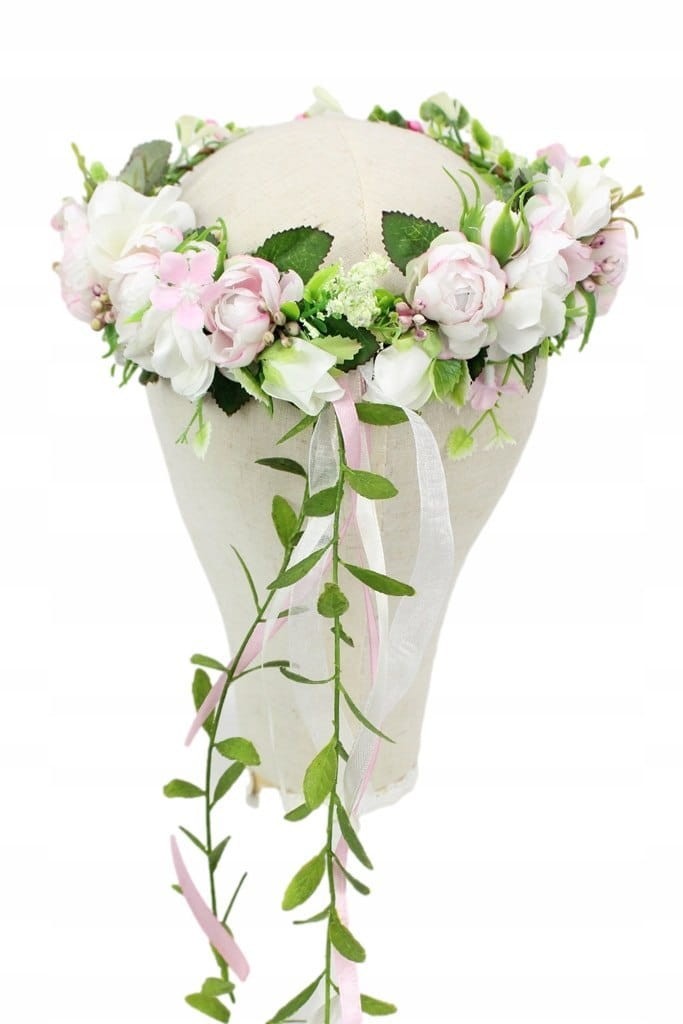 Wianek komunijny do włosów kwiatowy wianuszek na komunię bogaty tył różowy