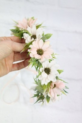 Wianek komunijny margaretka rumianek RÓŻOWY ozdoba