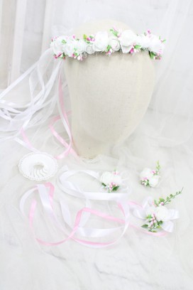 Zestaw to piękne dopełnienie do komunijnego stroju dla dziewczynki, który pozwoli jej odróżnić się nieco od koleżanek i poczuć wyjątkowo w dniu Pierwszej Komunii Świętej.