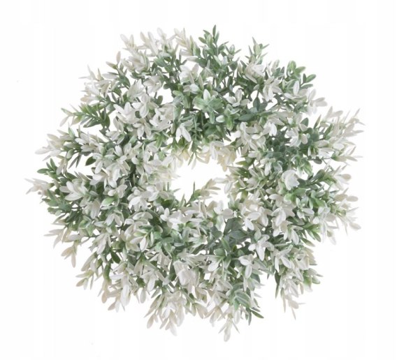 Wianek ozdobny 23cm biało zielony eukaliptus drobnolistny baza