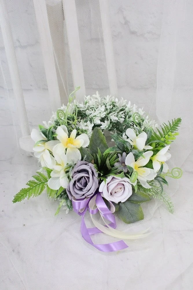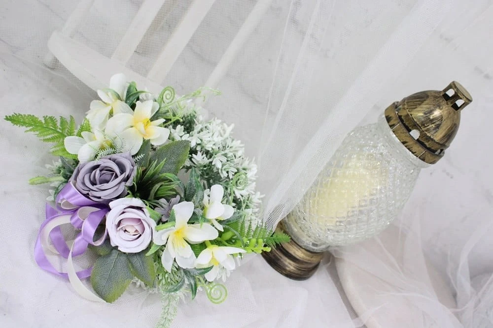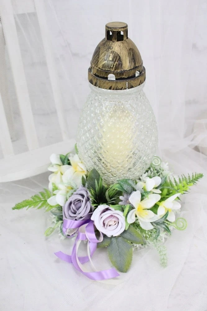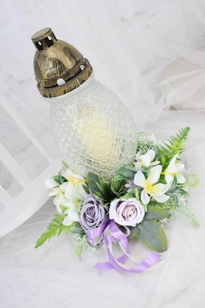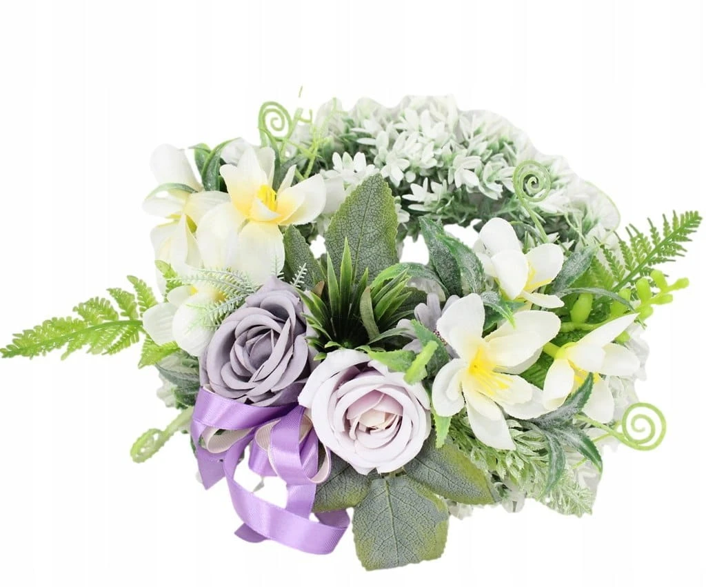 Wianek pod znicz wiązanka nagrobna kompozycja stroik na grób FIOLET