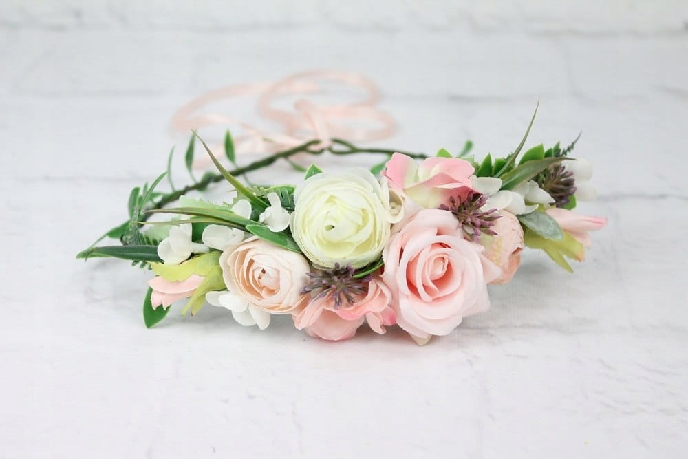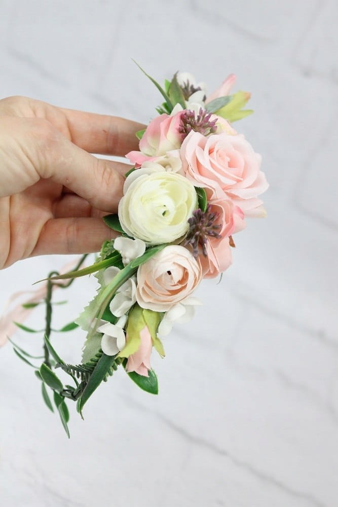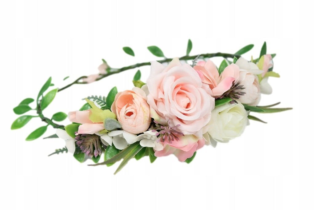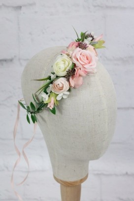 Wianek ślubny kwiatowy RÓŻOWY opaska do włosów