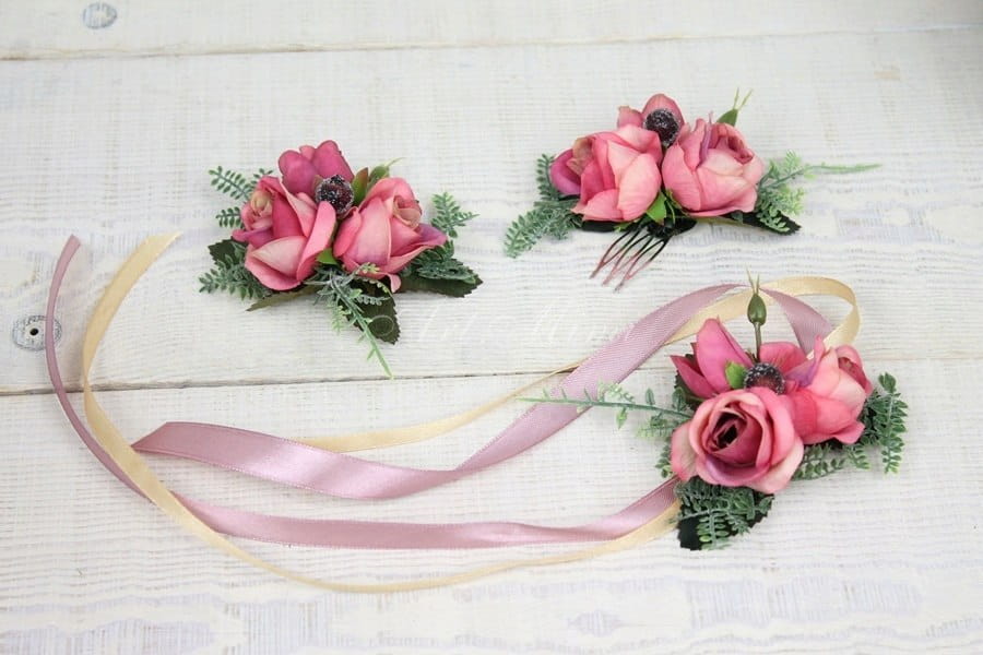 Wianek ślubny zwiewny róża BRUDNY RÓŻ sesja ozdoba