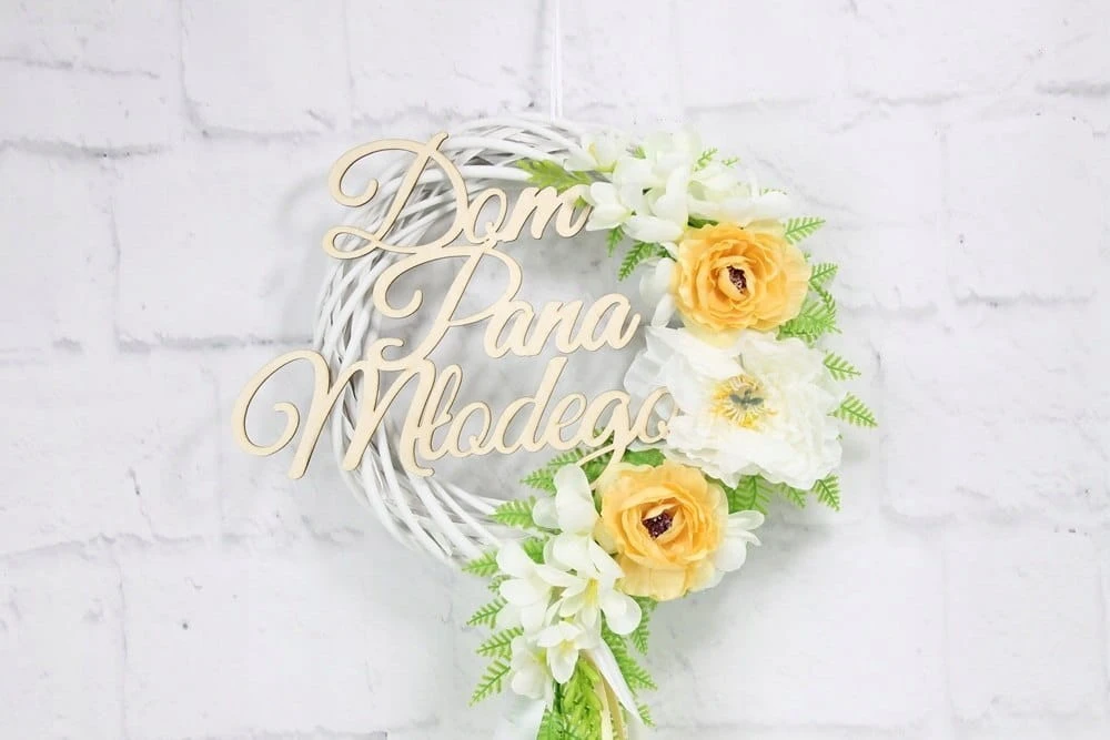 Dom Pana Młodego lub Dom Panny Młodej (po zakupie proszę o informację z jakim napisem wykonać wianek)