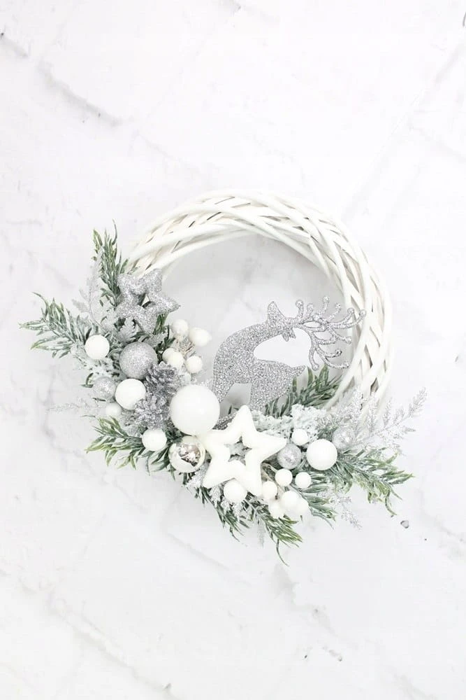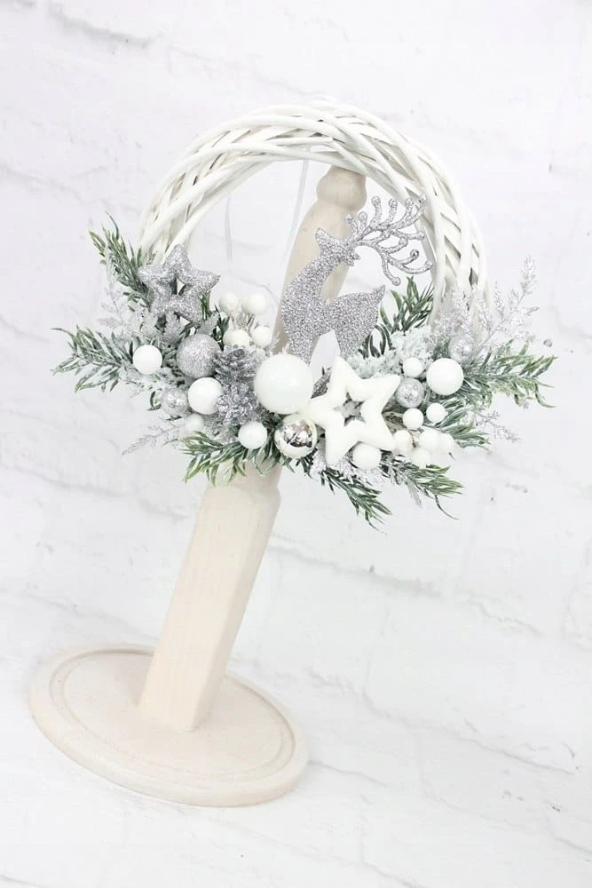 Wianek świąteczny SREBRNY na drzwi stroik renifer