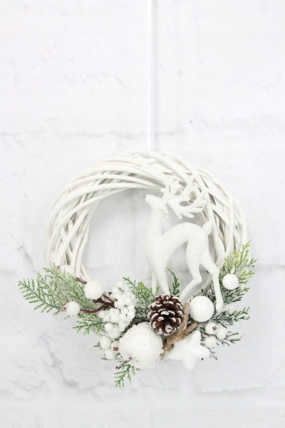 • Wianek świąteczny biały RENIFER dekoracja na drzwi