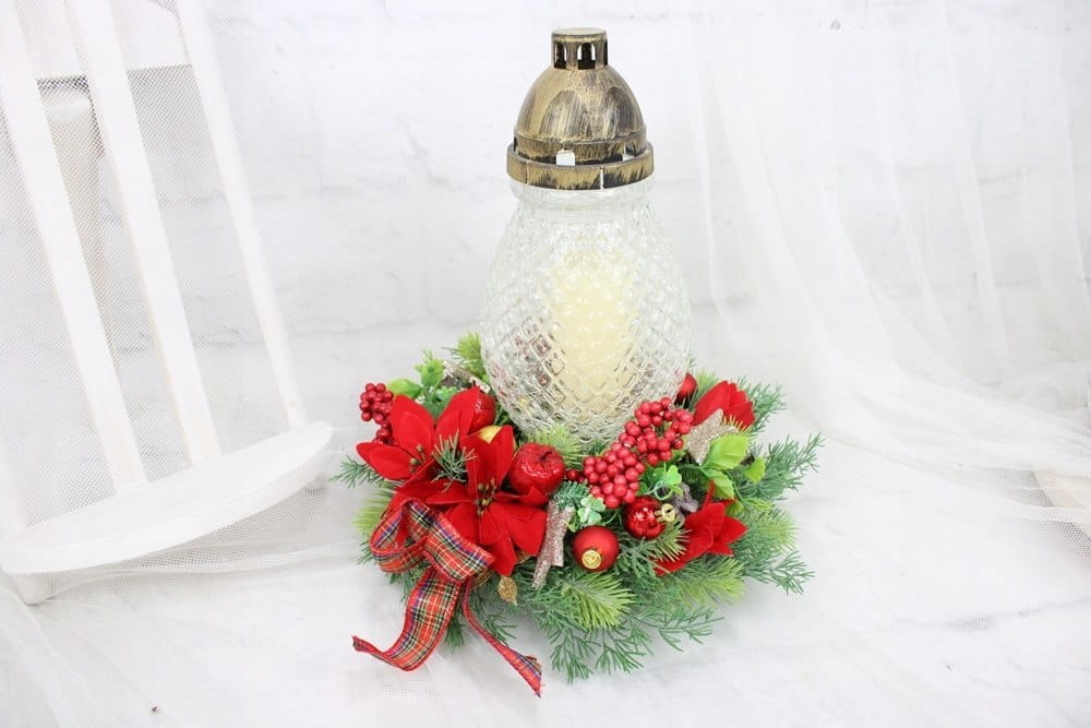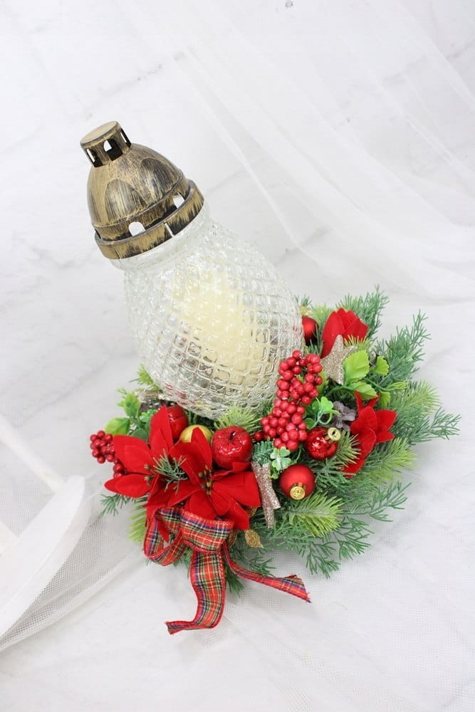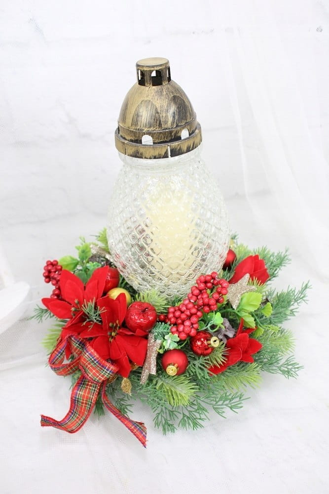 Wianek świąteczny pod znicz stroik na grób gwiazda betlejemska