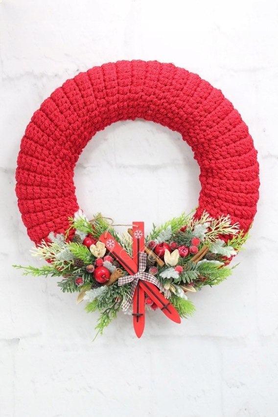 Piękny i bardzo wyjątkowy wianek świąteczny ubrany w cieplutki wełniany sweterek.