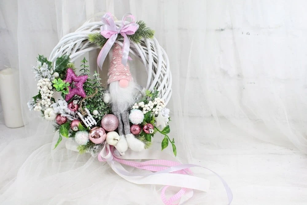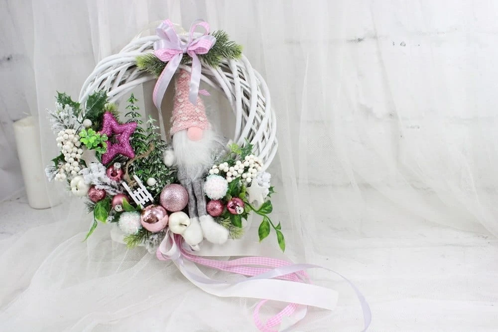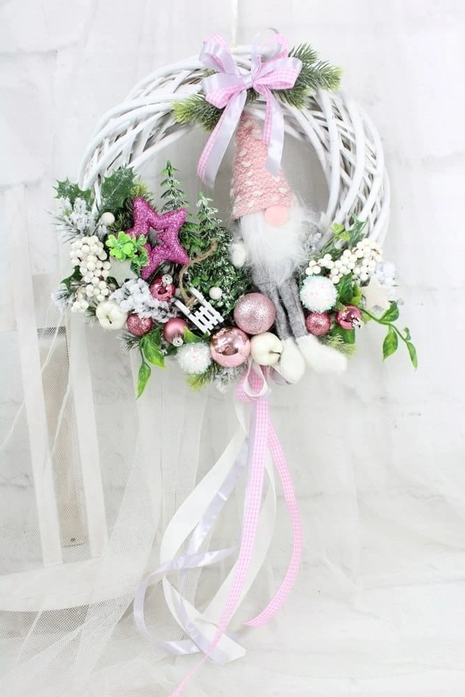 Wianek świąteczny wieniec stroik na drzwi ozdoba domu skrzat
