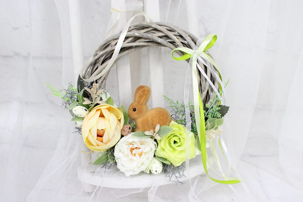 Wianek wielkanocny z zajączkiem wiosenny wianuszek dekoracja domu