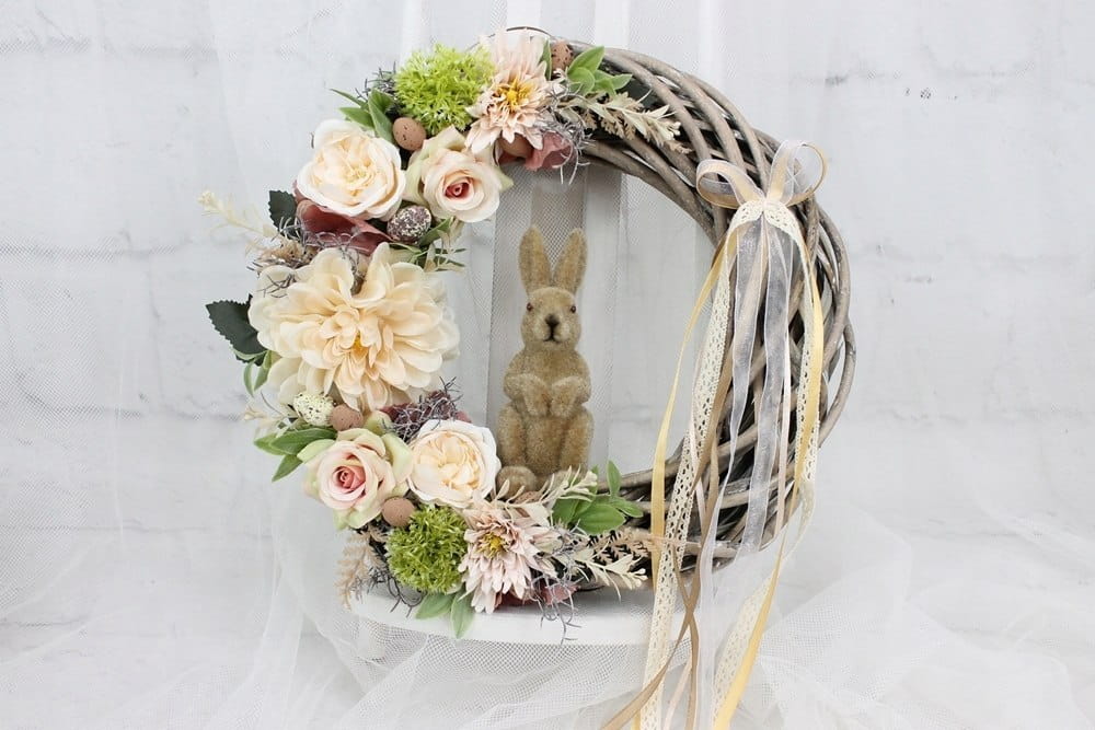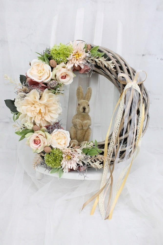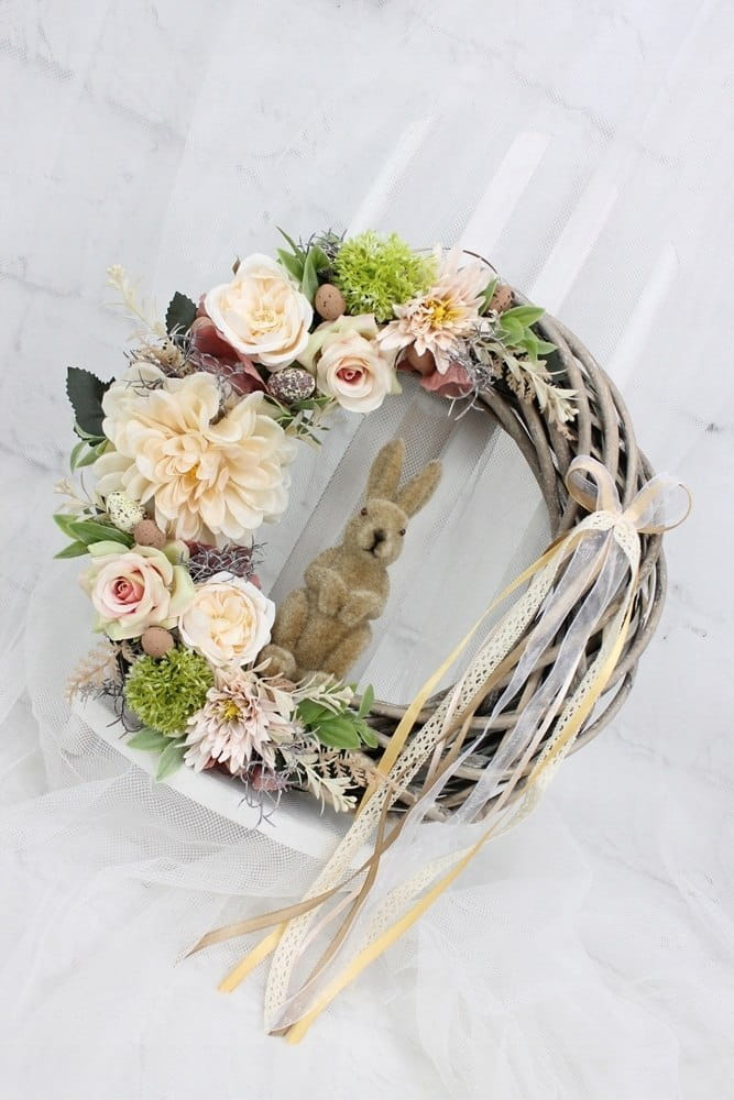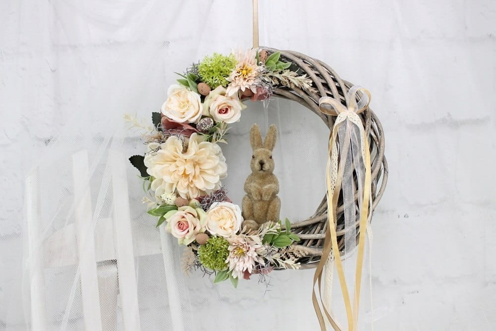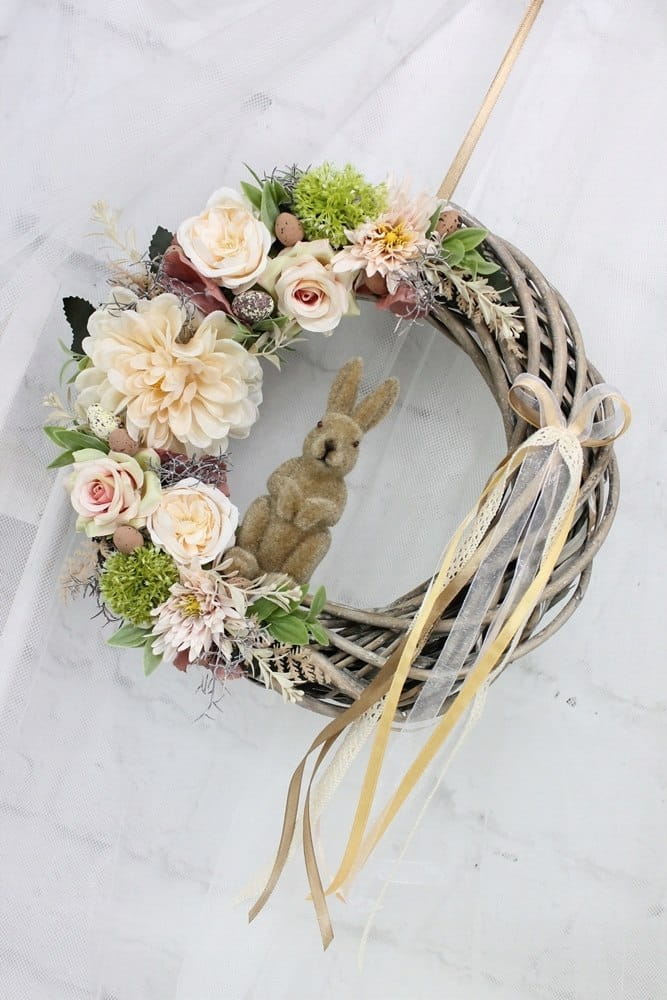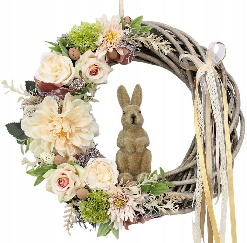 Wianek wielkanocny z zajączkiem wiosenny wieniec BEŻOWY dekoracja domu