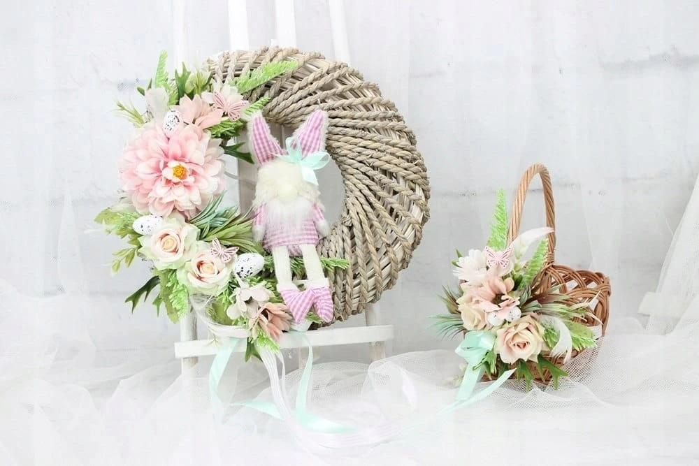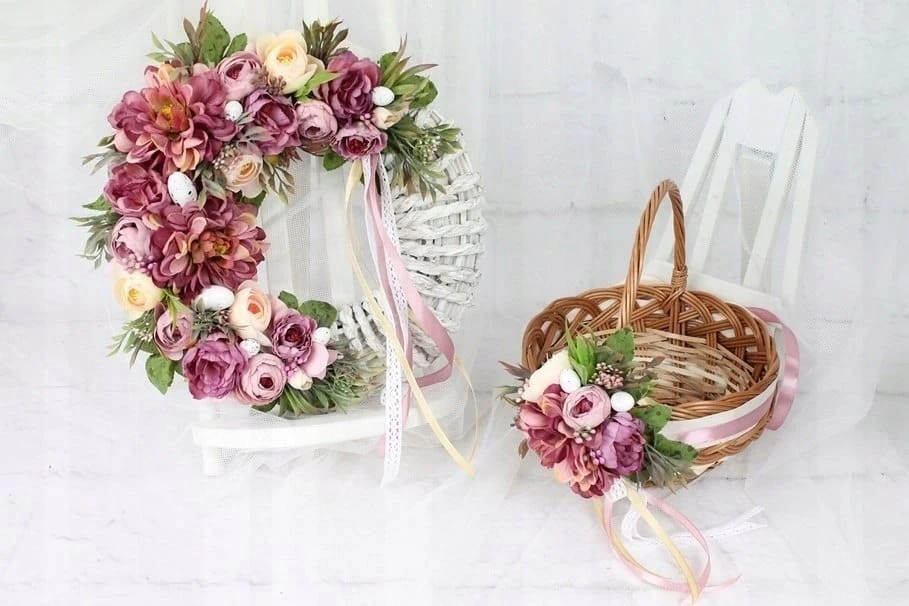 Wianek wieniec wielkanocny dekoracja domu na drzwi stroik z jajkami