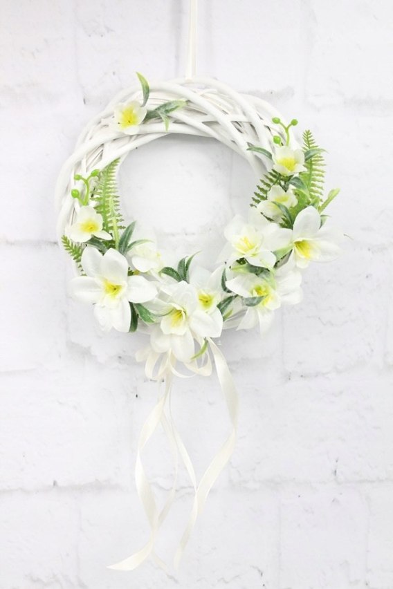 Do kompletu można również dokupić mniejszy wianek 20cm na białej wiklinie.