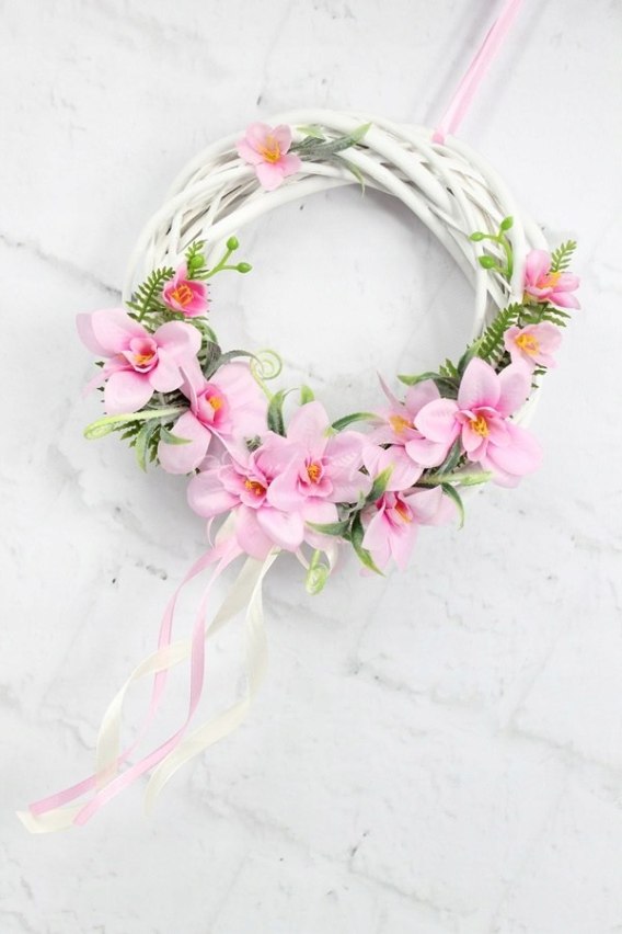 Wianek wiklinowy storczyk RÓŻOWY dekoracja drzwi