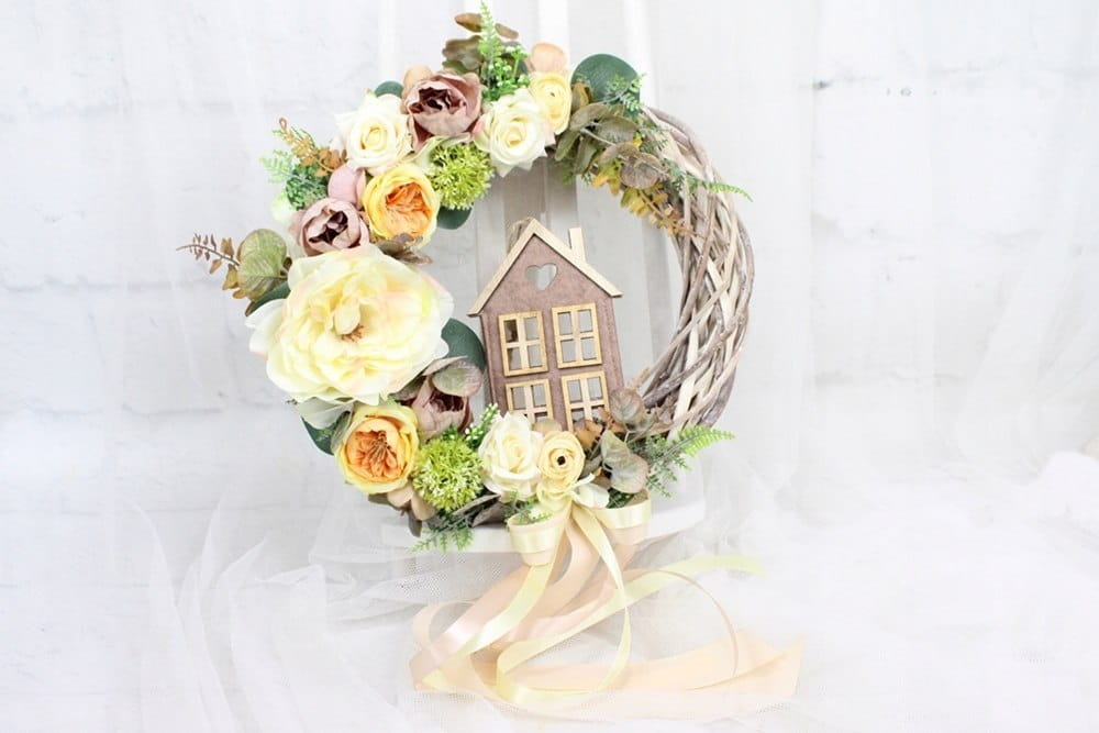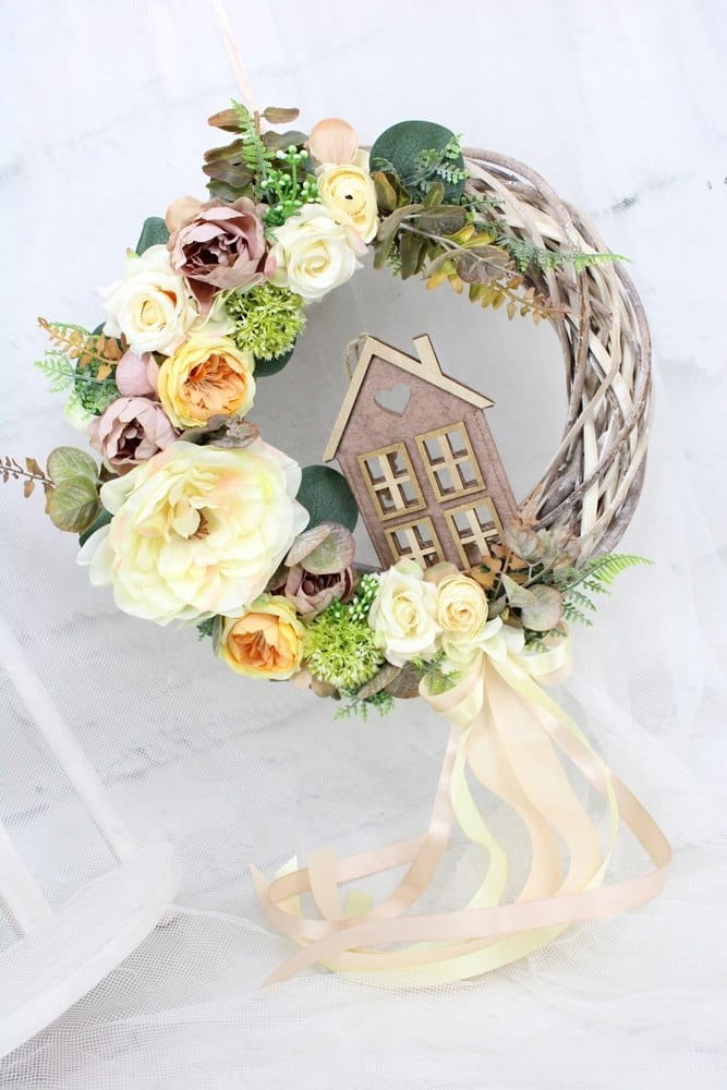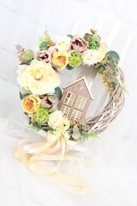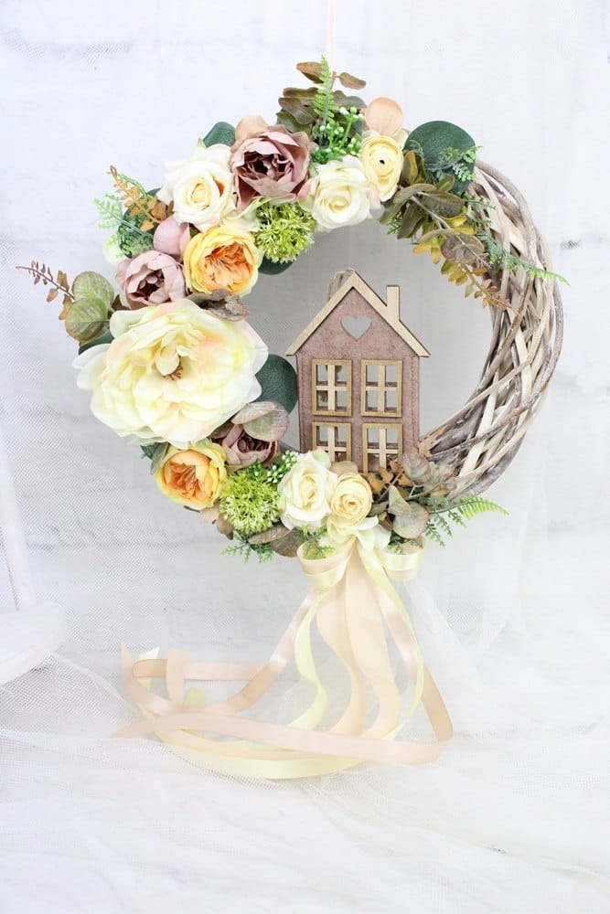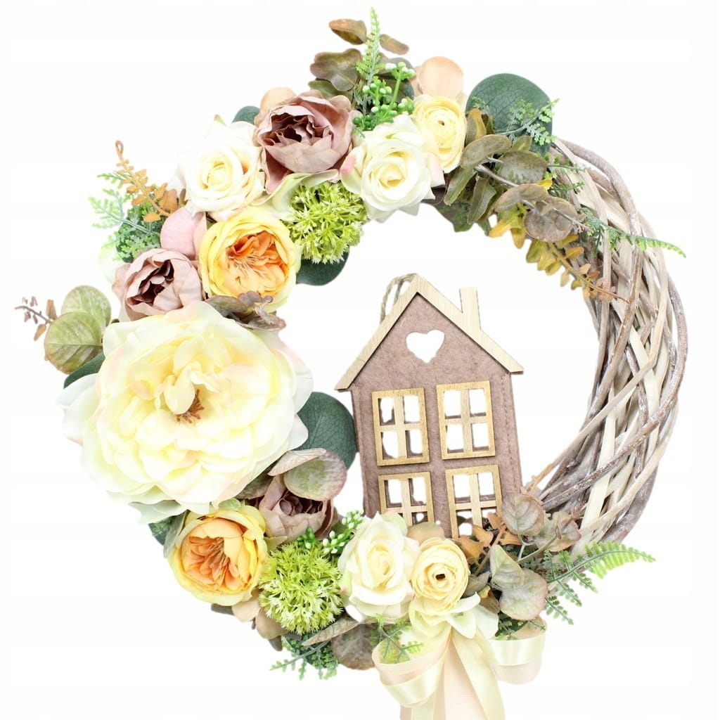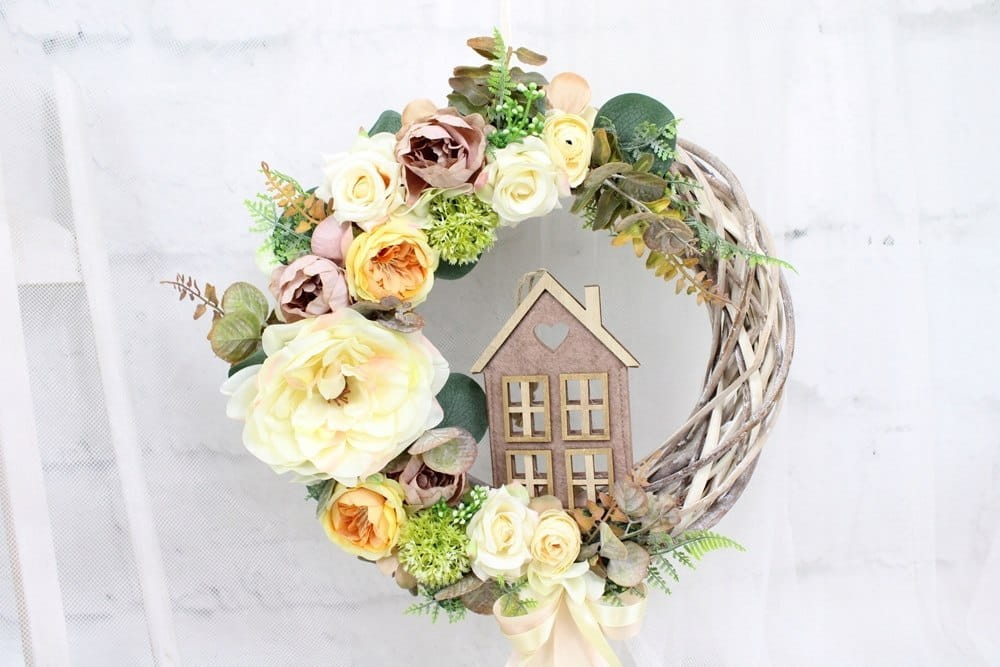 Wianek wiosenny dekoracja domu stroik wieniec na drzwi DOMEK