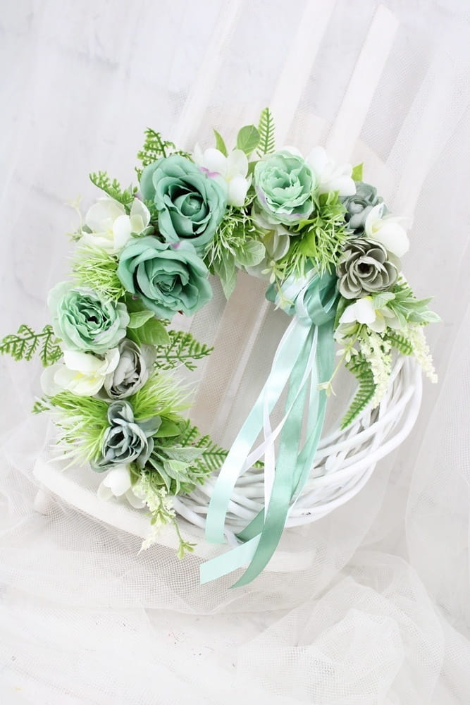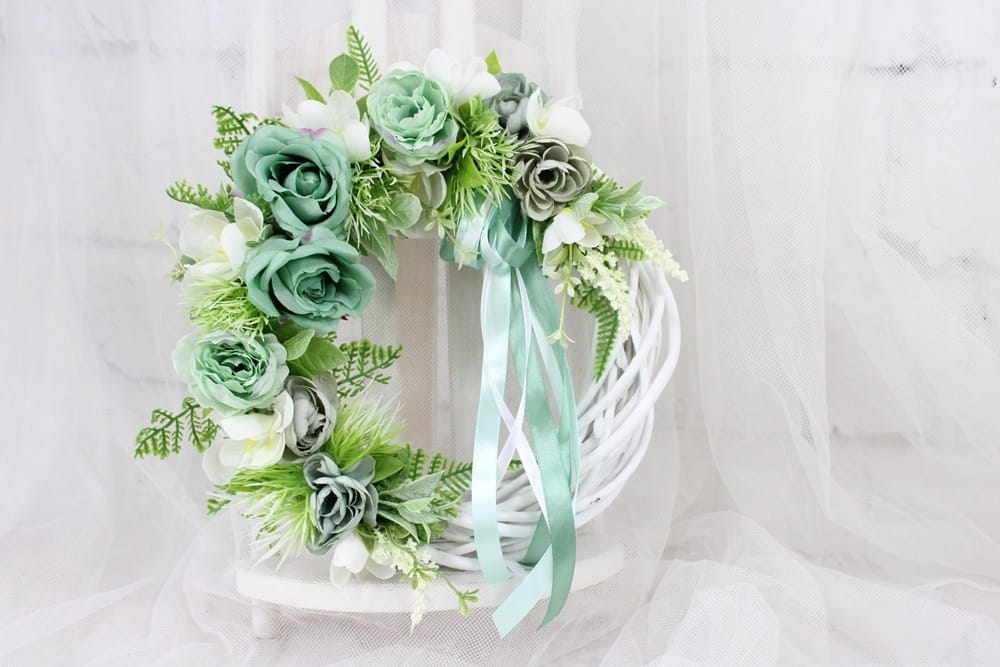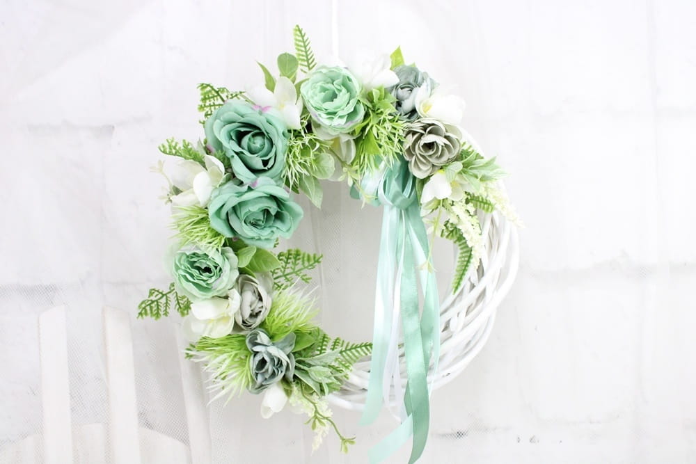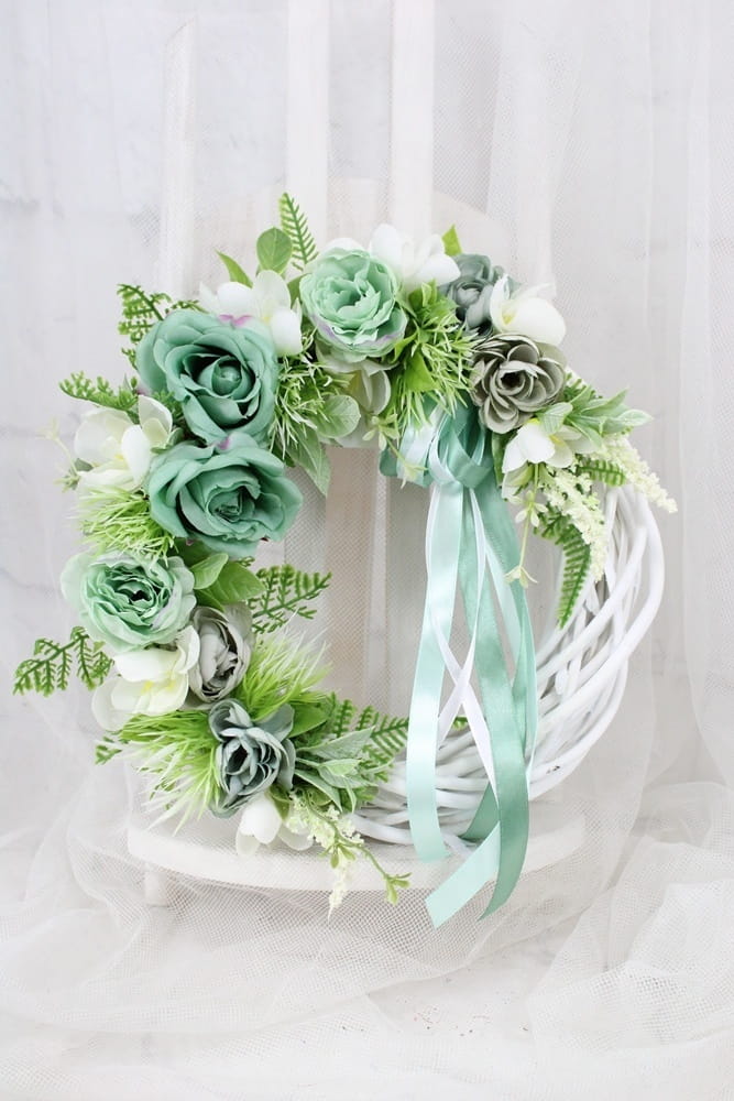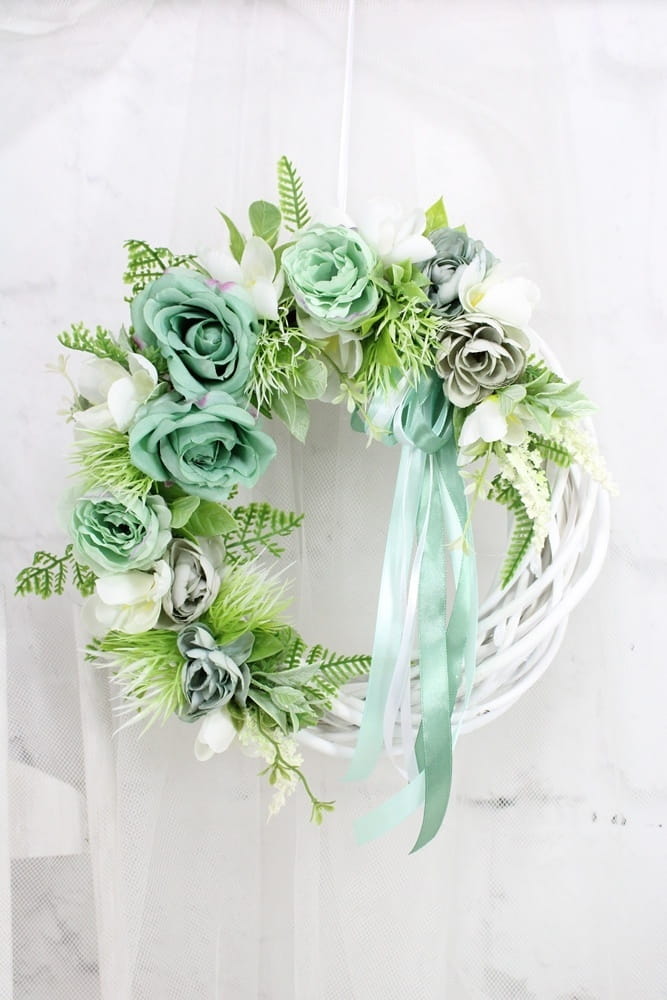 Wianek wiosenny dekoracja na drzwi stroik MIĘTOWY