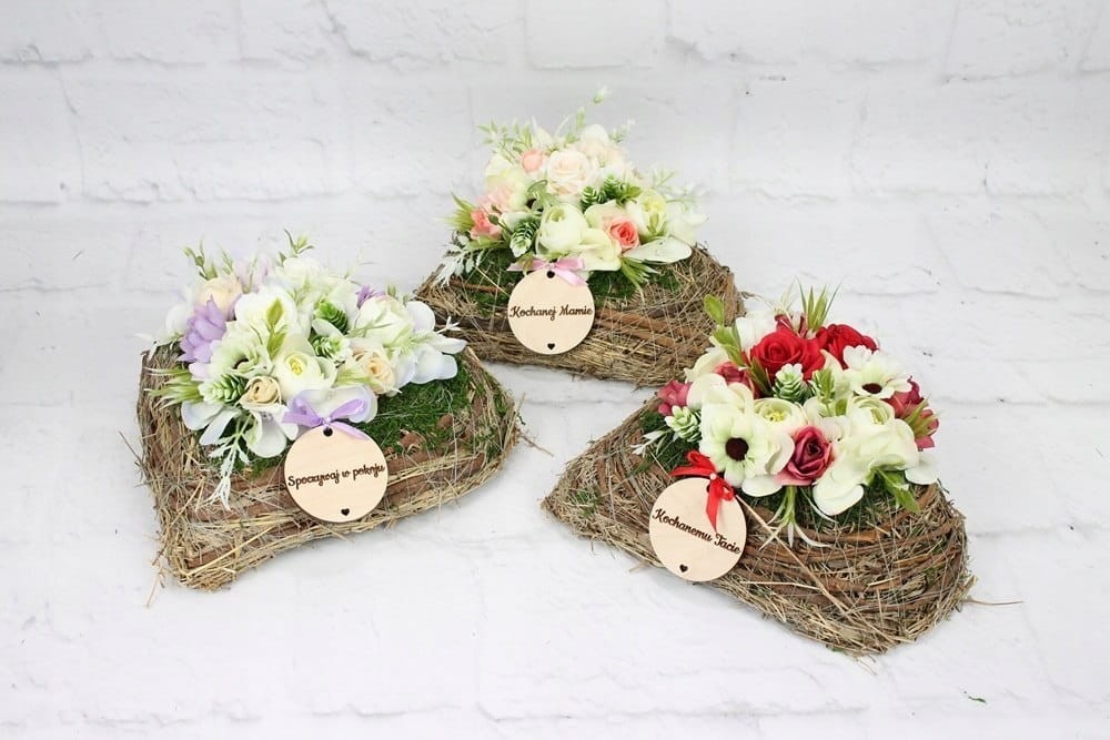Kompozycje wykonuje ręcznie z tego względu układ czy rodzaj ozdób i dodatków może się nieco różnić od zdjęć. Zawsze jednak zostaje zachowany styl i kolorystyka.
